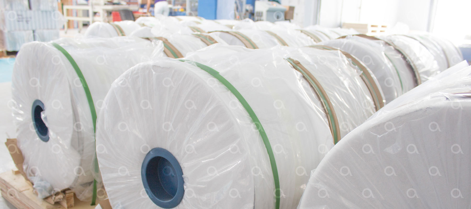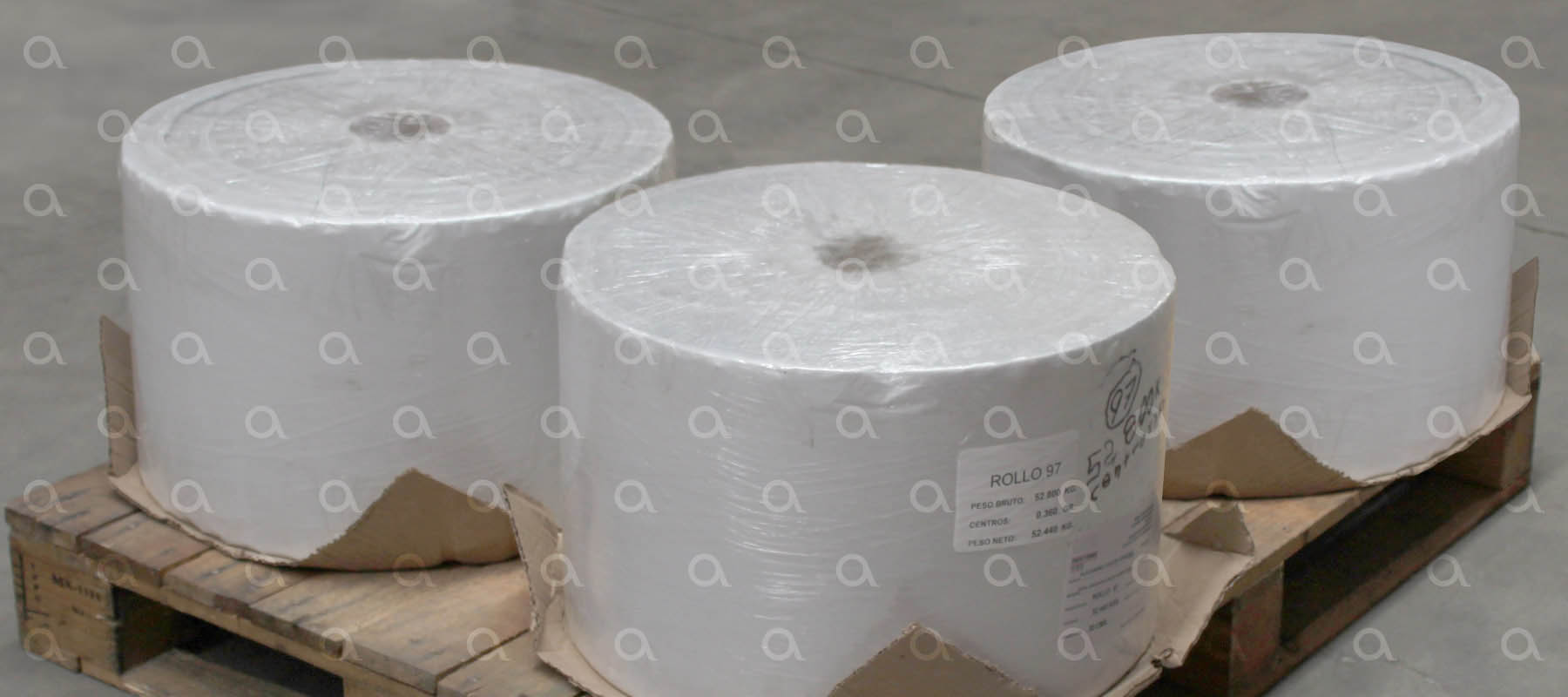 Bobina Master de papel aluminio, papel encerado y película plástica.